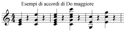 Per gli accordi il discorso è simile: un accordo di Do maggiore avrà come base fondante il Do. Ora si tratta di capire quali altri suoni compongano l'accordo di Do maggiore.
