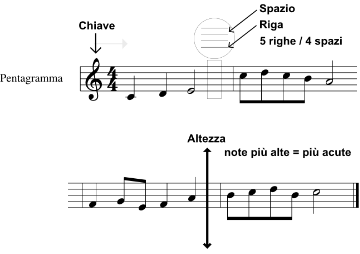 Il pentagramma o Rigo musicale, è fondamentale per leggere la musica. Esso e' formato da cinque righe che, poste una sopra l'altra, formano quattro spazi. Per questo si dice che il pentagramma è formato da cinque righe e quattro spazi. Sul pentagramma si segnano tutti i simboli musicali necessari per leggere note musicali fra i quali la chiave, che normalmente sta all'inizio, e le note. Ogni suono viene Scritto attraverso la "notazione" ovvero la scrittura di note musicali sul pentagramma. Ogni nota viene riportata attraverso un simbolo. Questo simbolo (la nota) stabilisce almeno due caratteristiche principali di ogni suono: la durata e l'altezza.